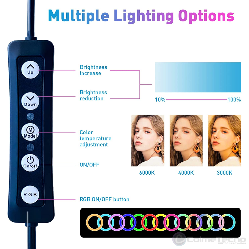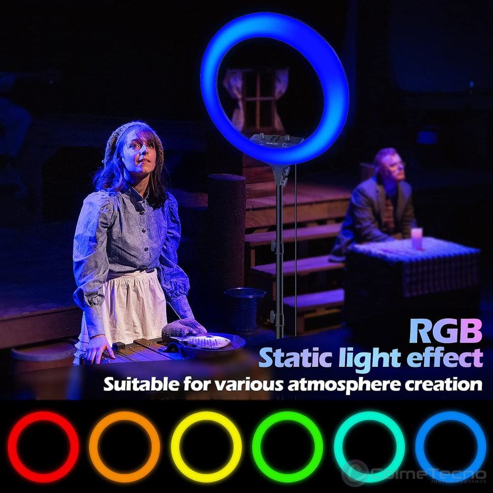 Aro De Luz Regulable 45cm RGB 18" Foto Estudio Kit + Trípode