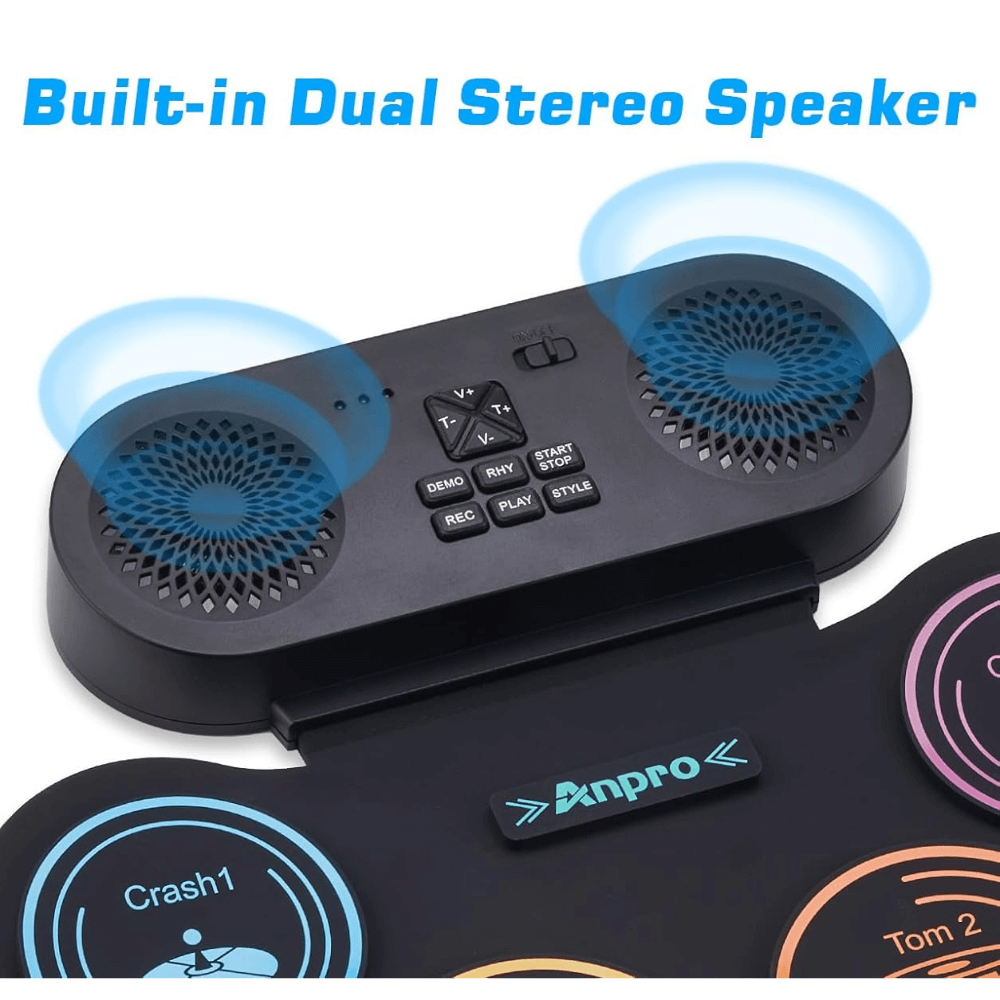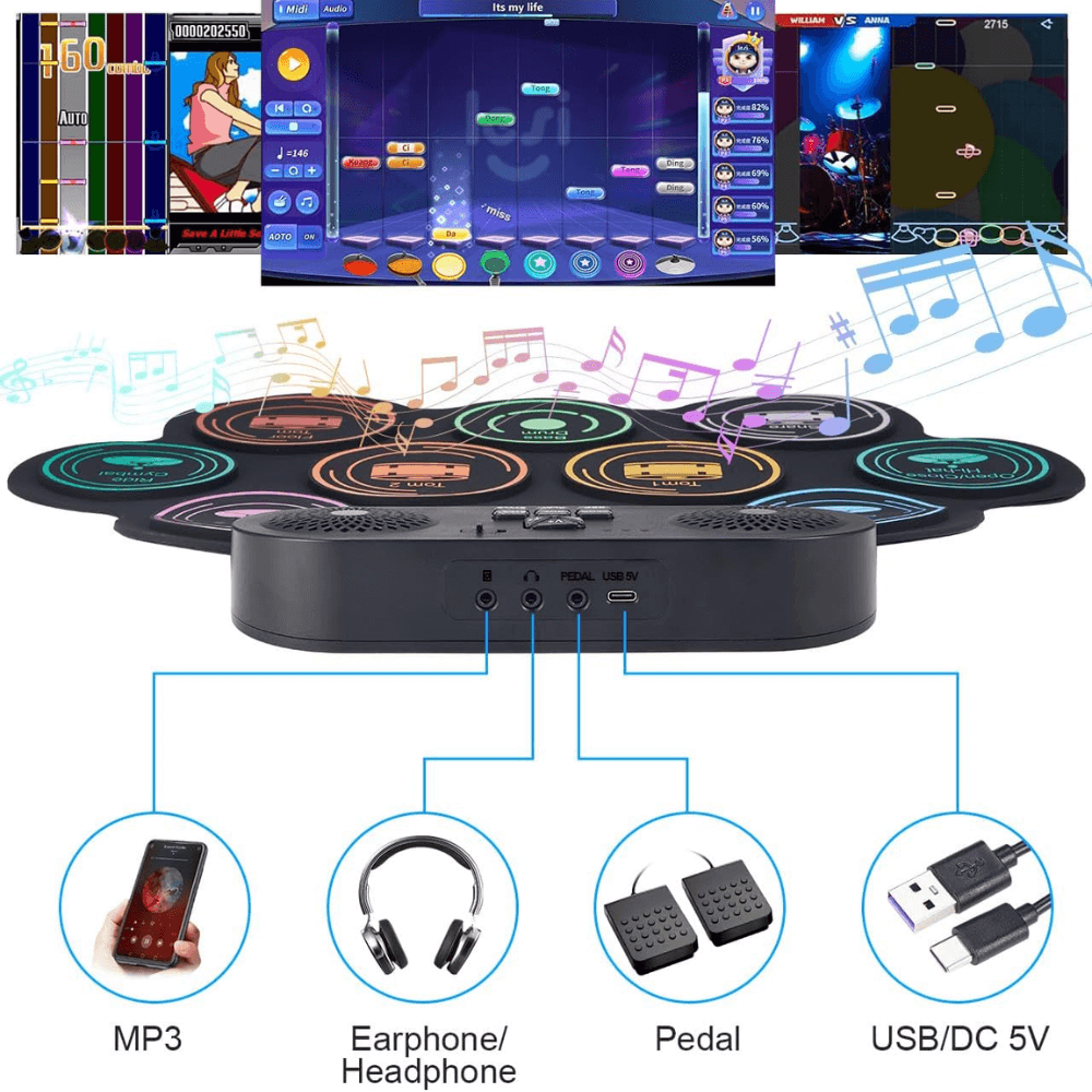 Juego de batería electrónica de 7 almohadillas, tambor eléctrico flexible con conector de auriculares integrado en altavoz y batería recargable, baquetas, instrumento de percusión para niños o principiantes.