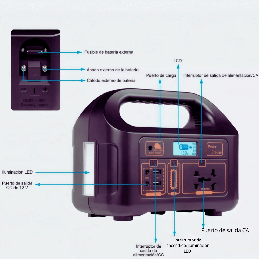 Con Transformación JJ, nunca más te quedarás sin energía. Nuestra estación de carga portátil y multifuncional es una solución innovadora y transformadora que te permite alimentar tus dispositivos electrónicos, TV, computadora portátil, ventiladores e incluso la batería de tu auto.