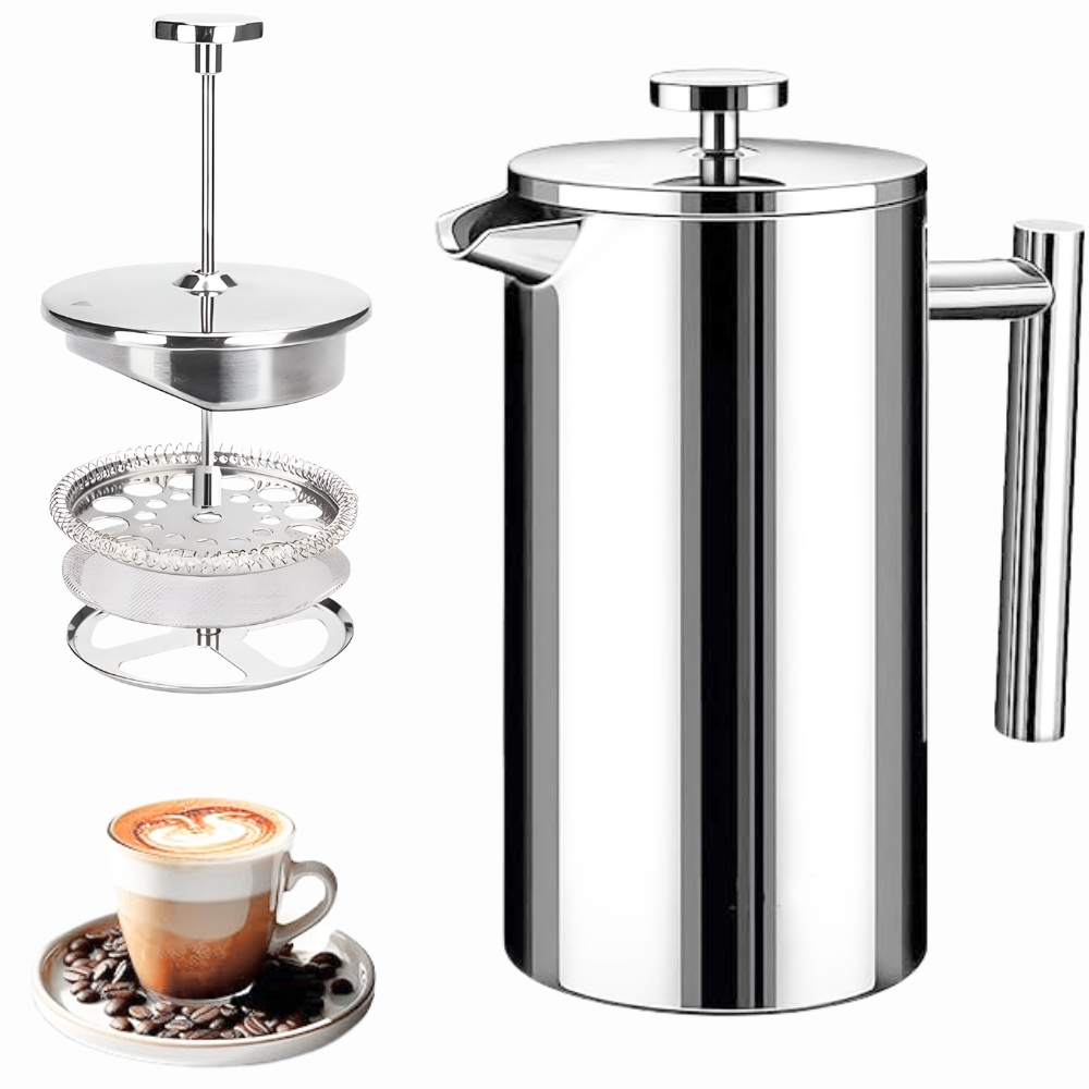 La cafetera prensa francesa de acero inoxidable es una excelente opción para quienes disfrutan del café y buscan una preparación artesanal con un sabor auténtico. Su diseño elegante, resistente y funcional la convierte en una alternativa práctica a las cafeteras eléctricas, permitiendo obtener un café de alta calidad con un método tradicional sin necesidad de filtros de papel.
