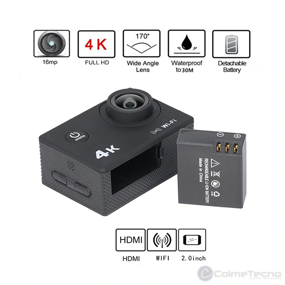Cámara de acción Full HD 4K 1080P WiFi Cámara de Video deportiva Impermeable sumergible hasta 30mt