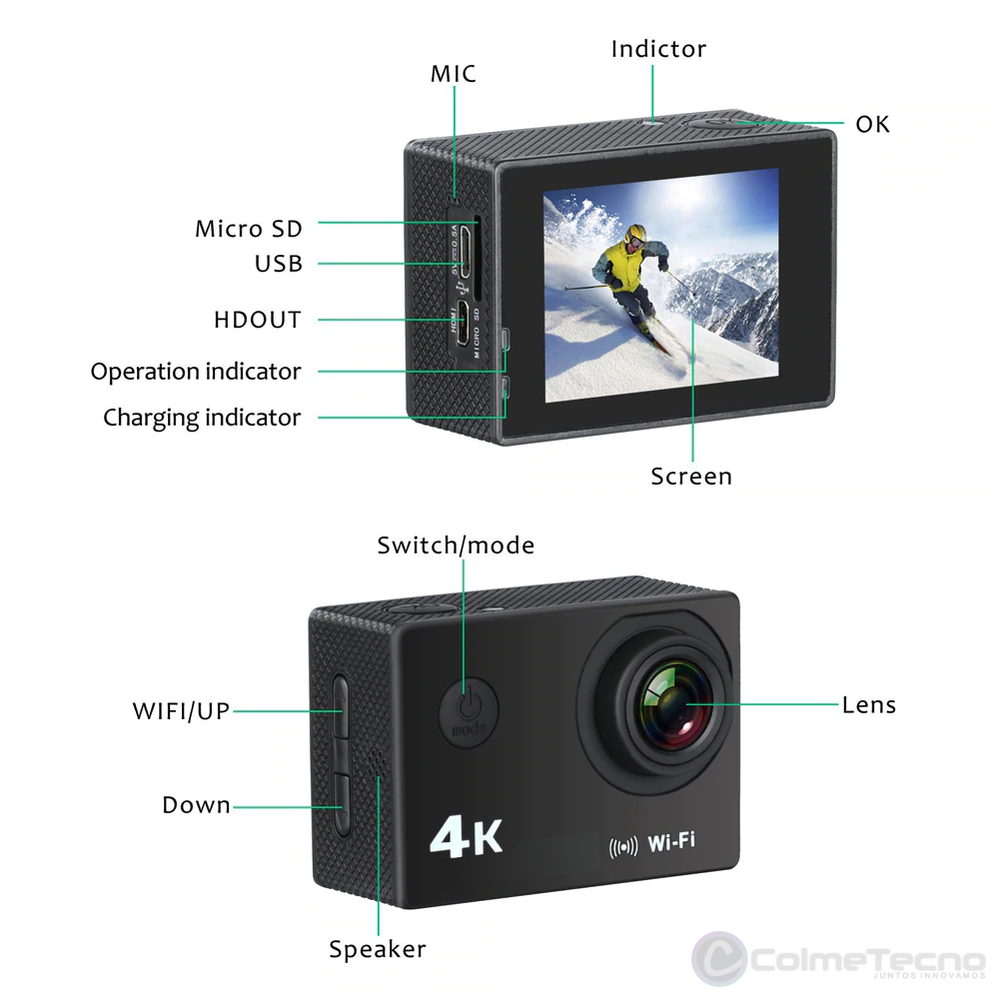 Cámara de Acción Deportiva Wifi Full HD 4k Sport Cam Webcam