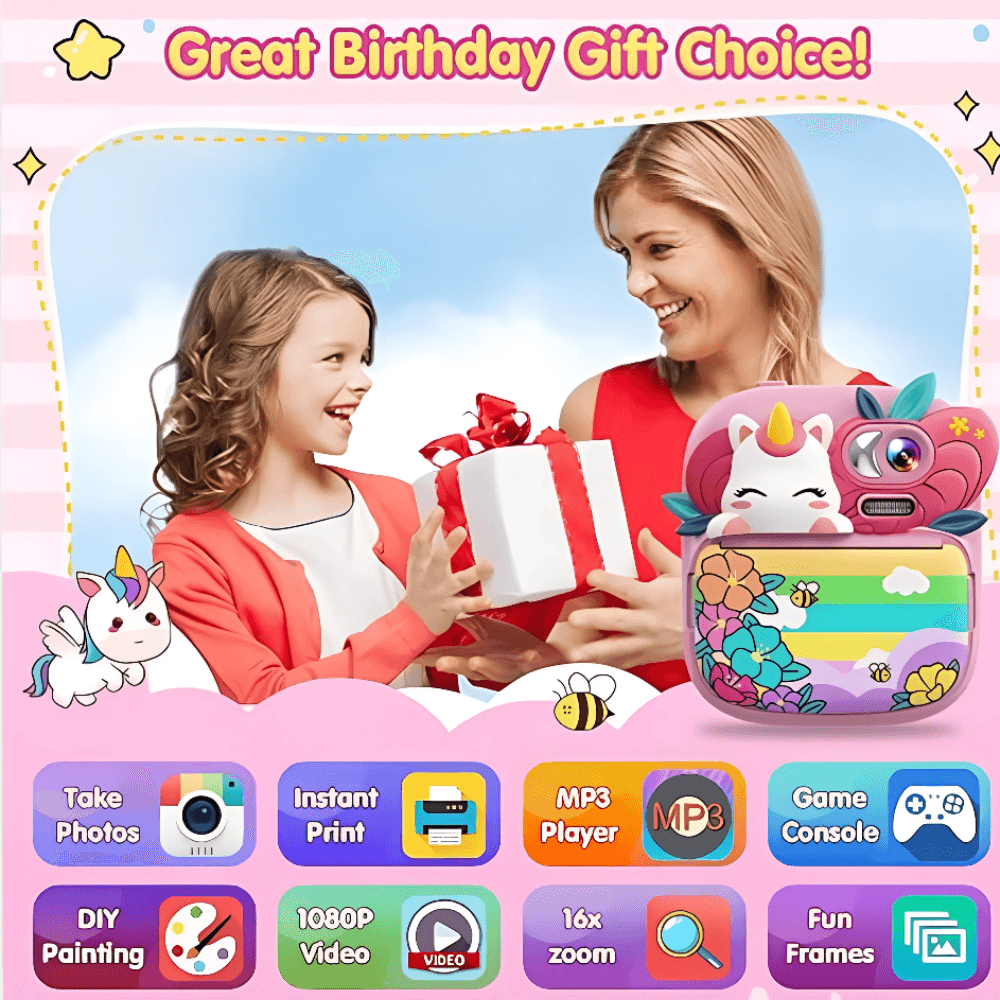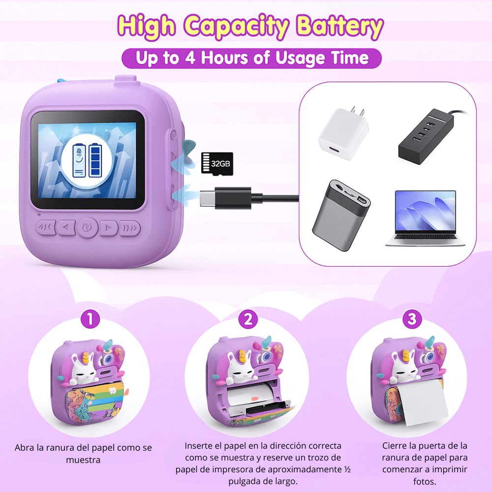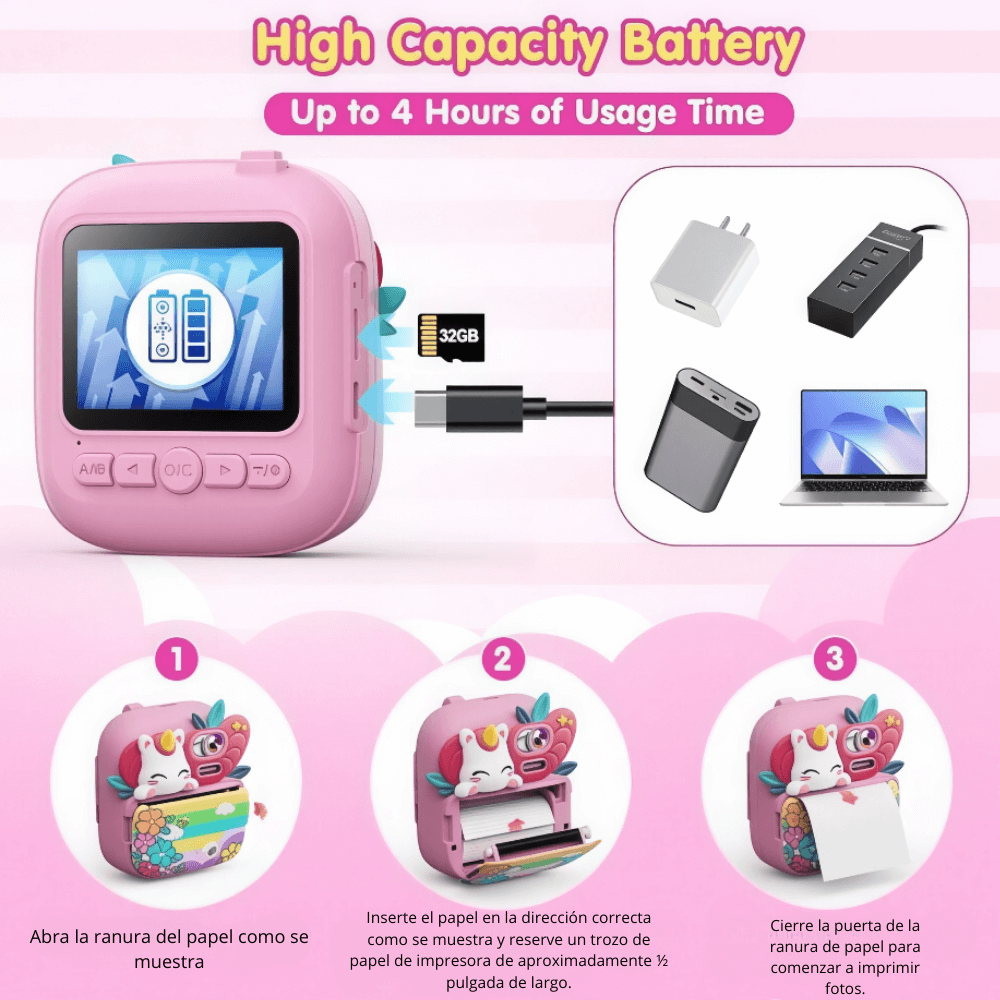 Descubre la diversión de capturar recuerdos con la Cámara Instantánea Infantil Digital Térmica 1080p, el regalo perfecto para despertar la creatividad de los más pequeños. Diseñada especialmente para niños, esta cámara combina fotografía, video y función de impresión instantánea, convirtiéndose en una herramienta educativa y entretenida que fomenta la imaginación y la curiosidad.