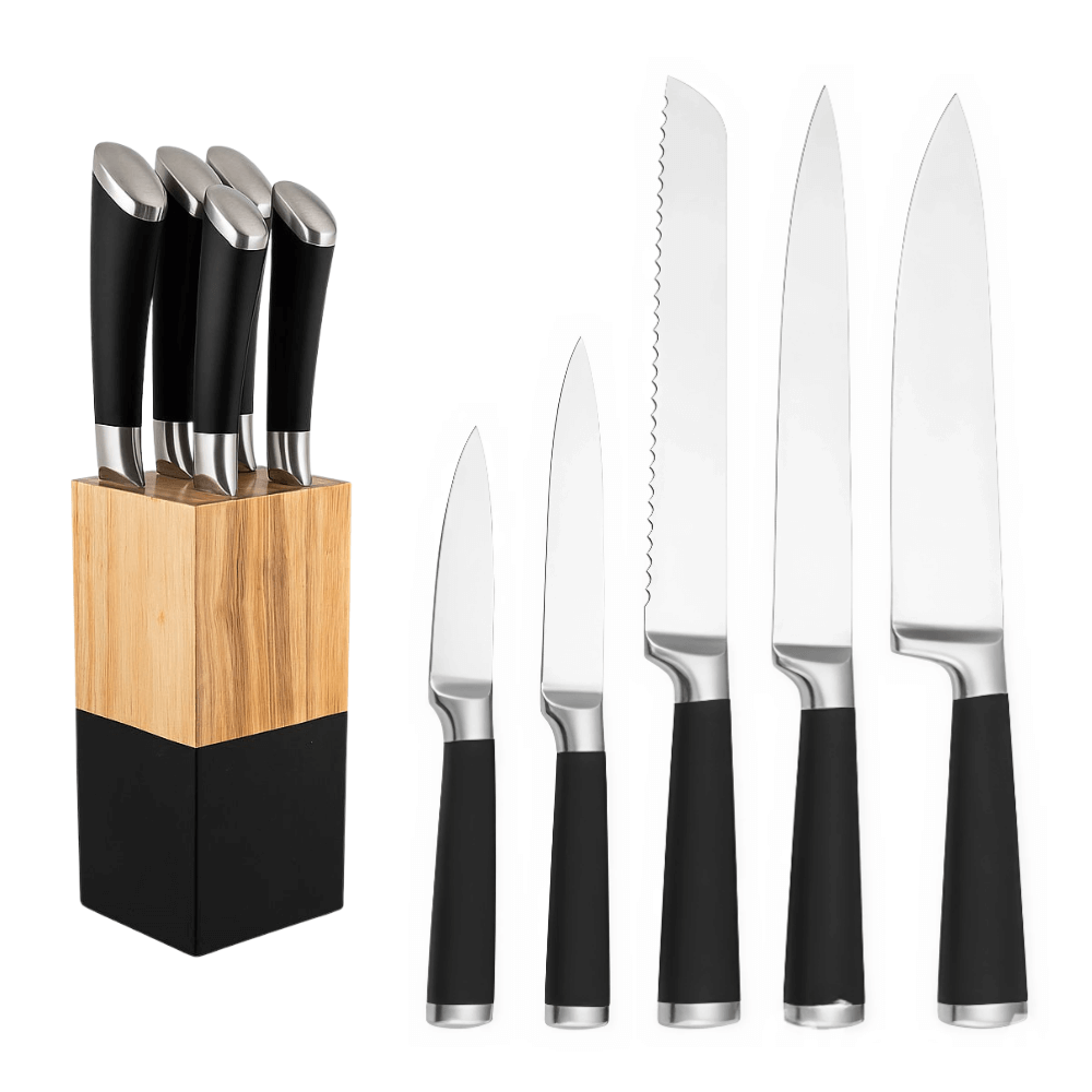 Juego de Cuchillos de Cocina 6 Piezas con Base de Bambú y Acero Inoxidable
