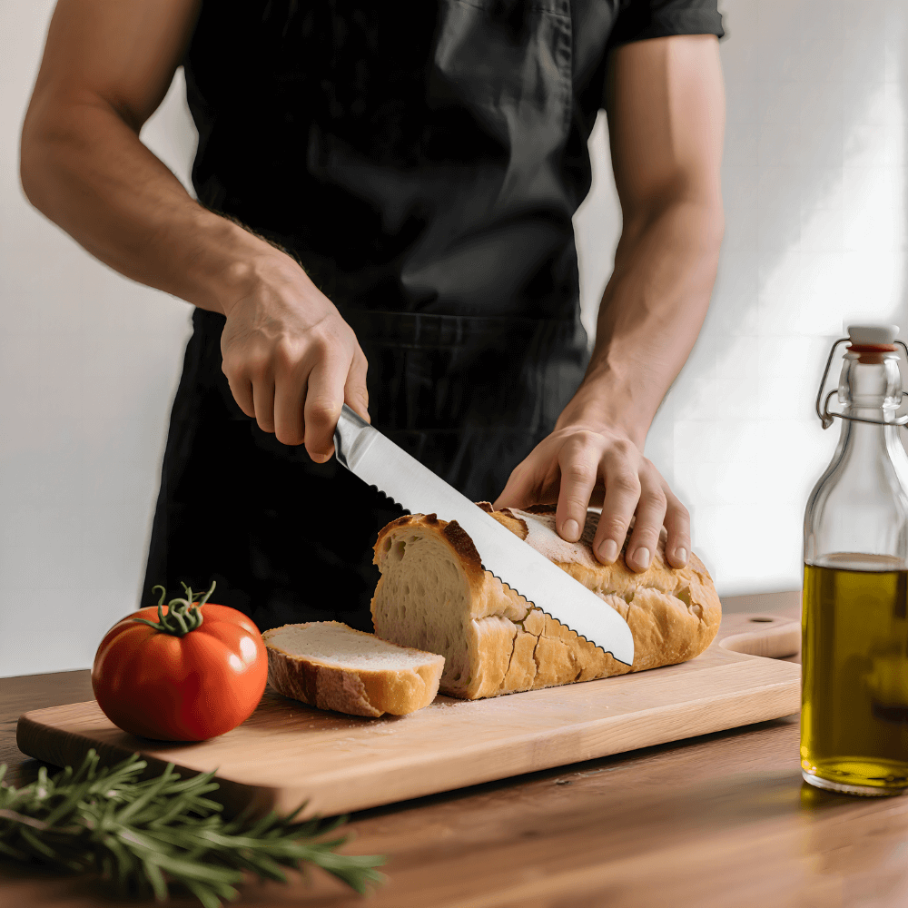 Cuchillo Panero: Hoja dentada perfecta para cortar pan y masas sin aplastarlas.