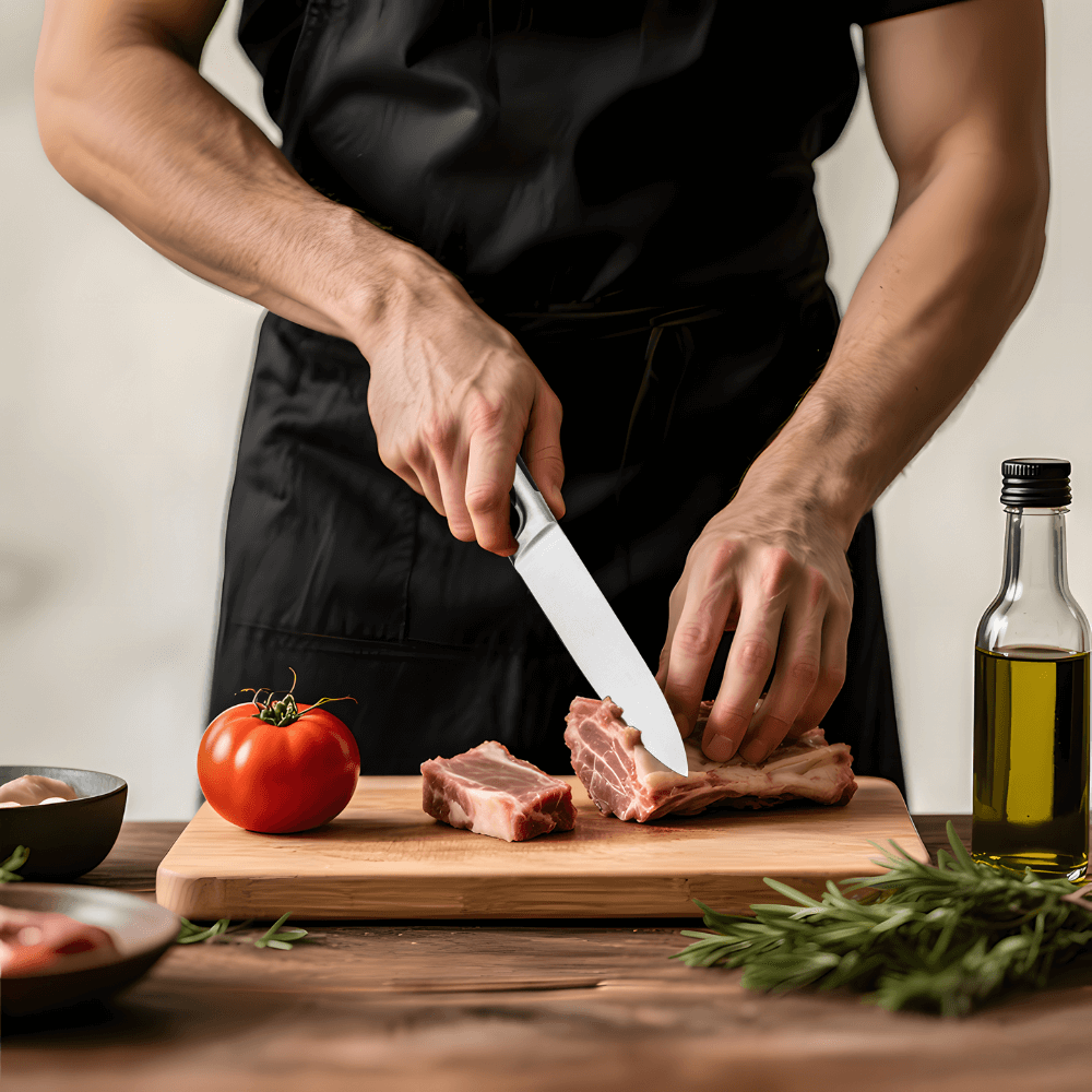 Cuchillo para Carne: Diseñado para cortes limpios y precisos en carnes cocidas o crudas.