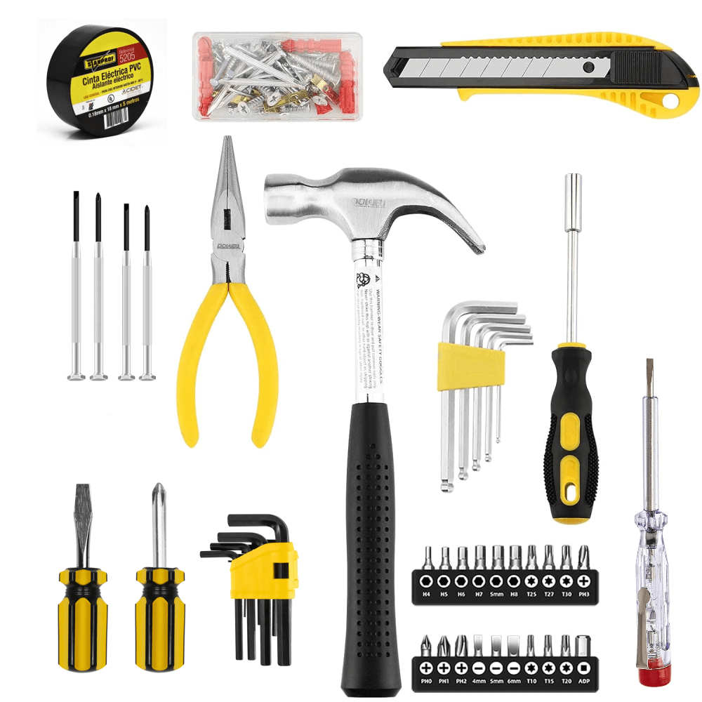Kit esencial de reparación para el hogar: equipado con implementos básicos necesarios para arreglos domésticos comunes y proyectos de bricolaje amigables para principiantes. Ideal para propietarios de viviendas, profesionales de mantenimiento. Perfectamente adecuado para la organización del garaje, reparaciones de emergencia y mantenimiento rutinario de la propiedad.