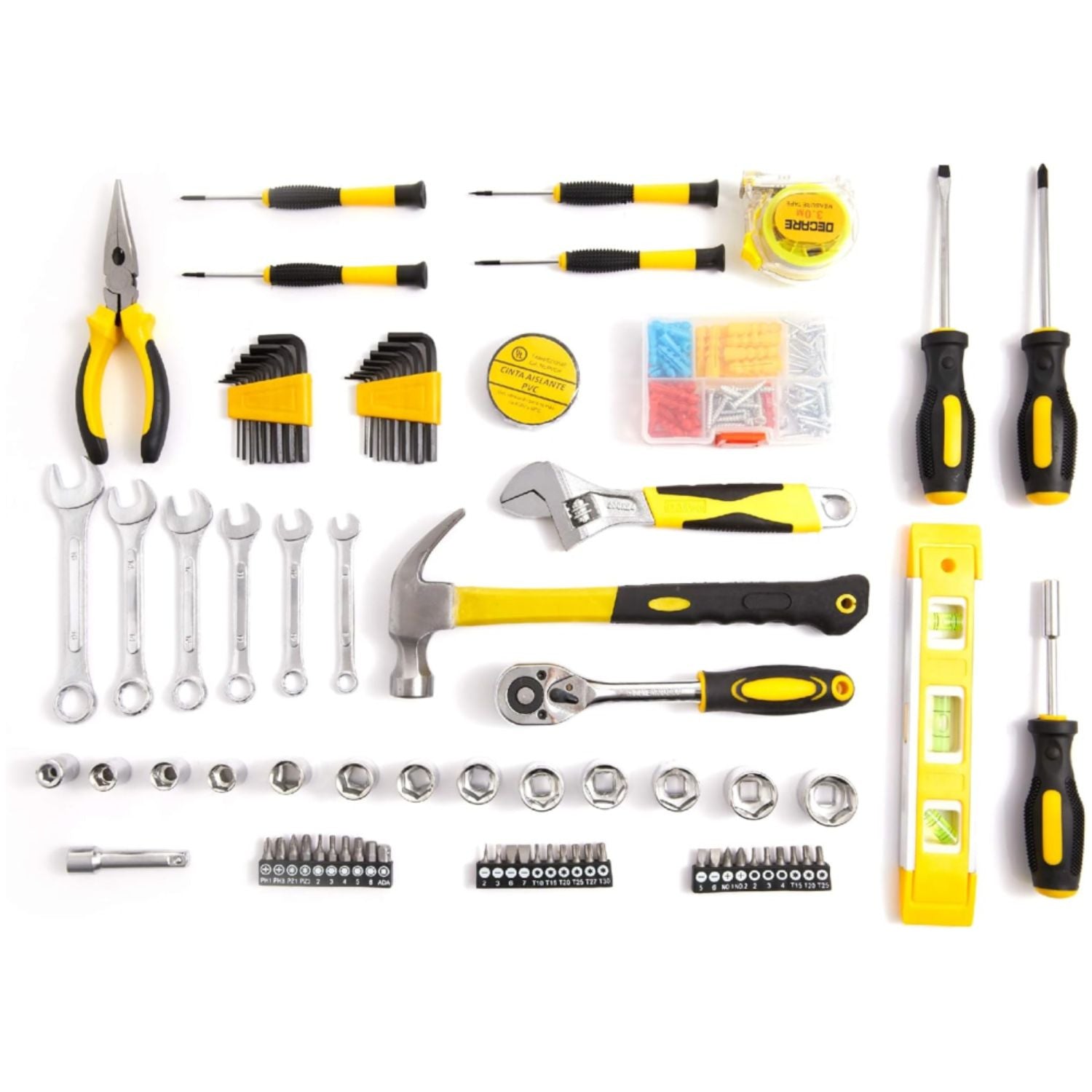 1 cinta métrica, 3 destornilladores