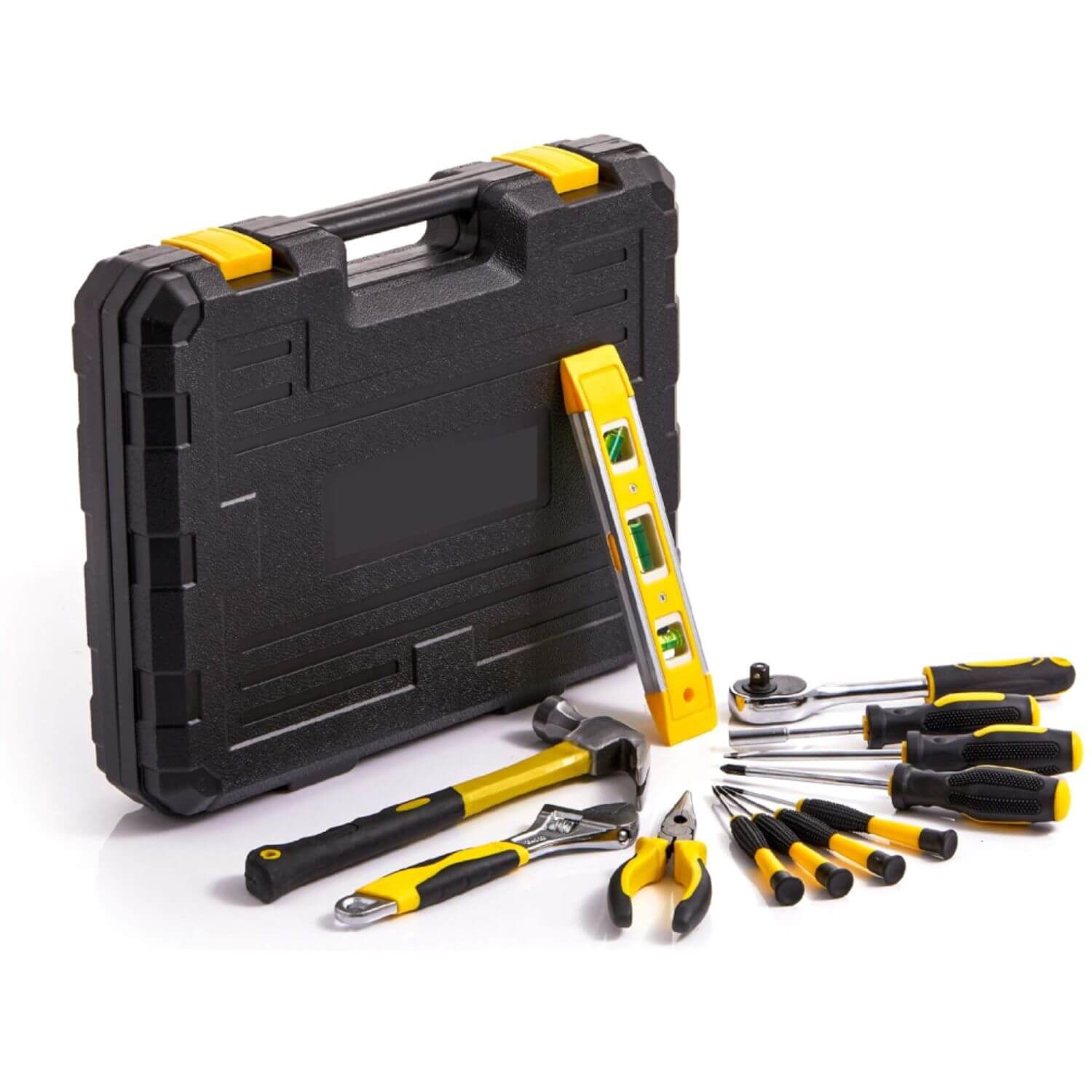 Alta calidad y resistente: el kit de herramientas básico para el hogar cuenta con aleación de acero de alta calidad, resistente y duradero, chapado en cromo para resistir la corrosión, nuestro kit básico de herramientas para el hogar multiusos con caja durará toda una vida sin óxido ni abscisión.