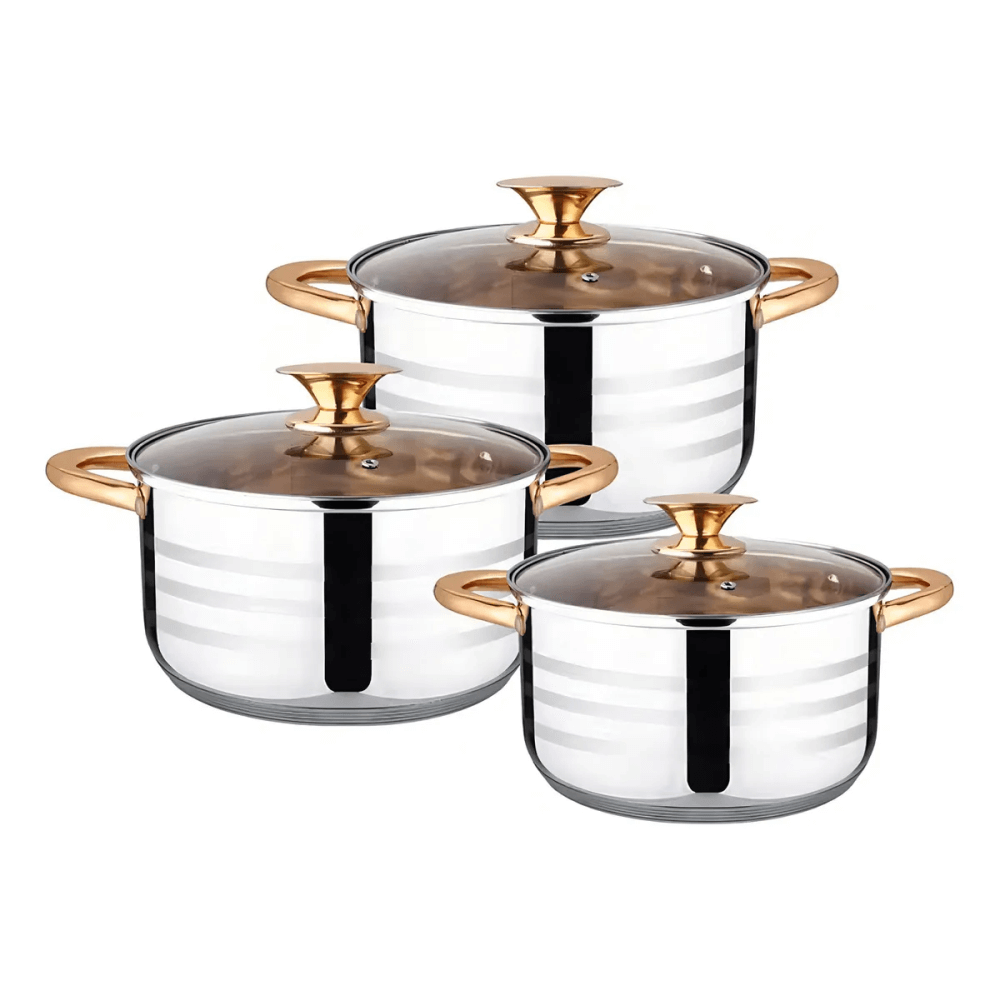 Juego De Ollas Acero Quirurgico Duo Le Bao 6pcs Tapa Vidrio