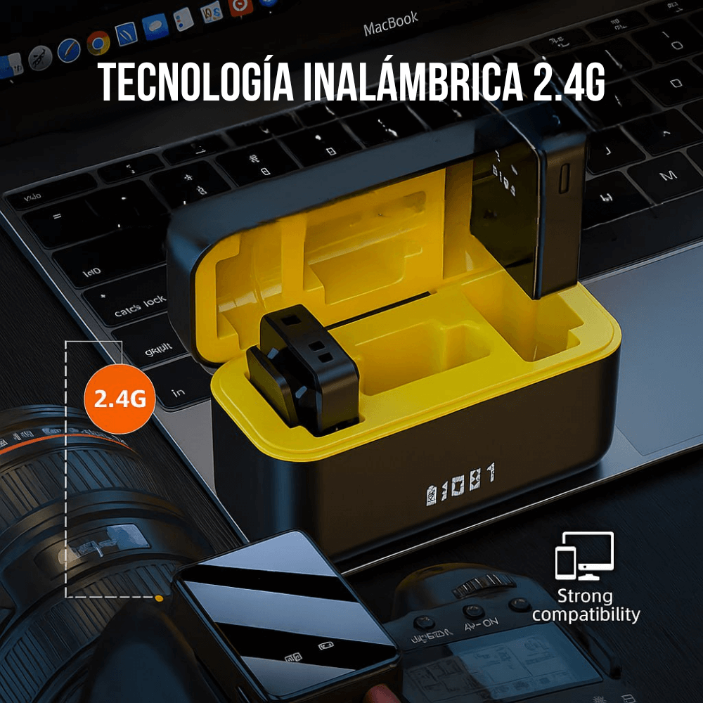 Gracias a la transmisión inalámbrica de 2.4 GHz, garantiza una conexión rápida, estable y sin interrupciones. Solo debes conectar el receptor a tu dispositivo, encender los micrófonos y estarán listos para usarse en cuestión de segundos, sin configuraciones complicadas.