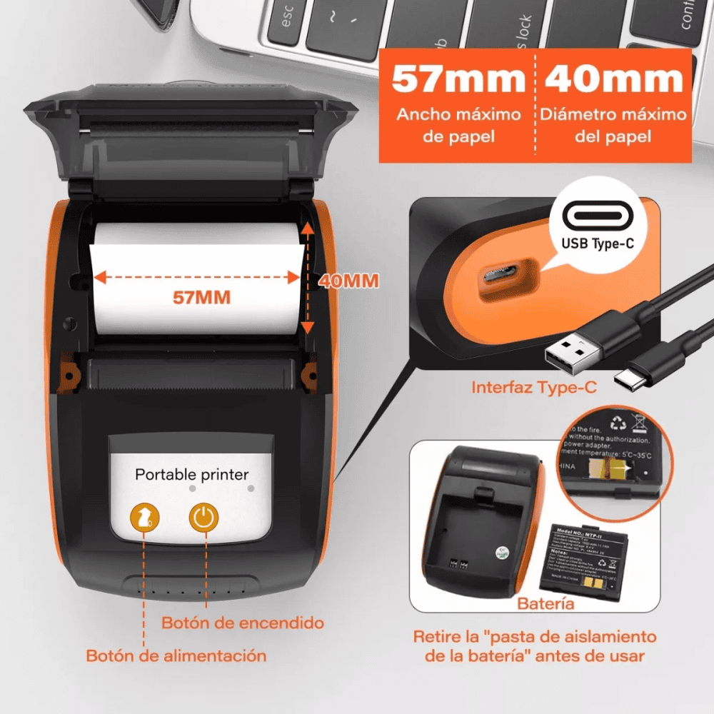 NOTA: Antes de usar debe descargar una App de Impresora que recomienda el Manual del usuario, una vez descargado ingresas y conectas la impresora por medio de Bluetooth desde la App.