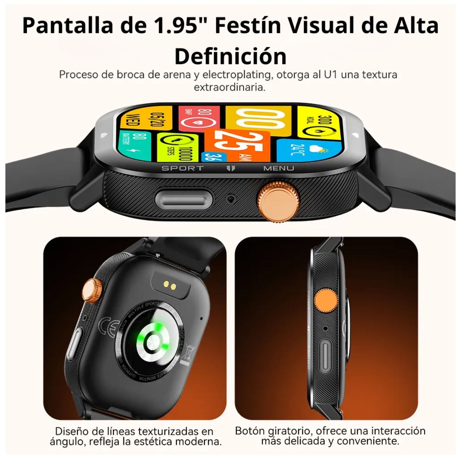 Descubre el Smartwatch Cubot U1, el reloj inteligente que combina estilo, tecnología y rendimiento para acompañarte en tu día a día. Con su pantalla táctil de 1.95 pulgadas, tendrás una visualización clara, brillante y moderna, ideal para controlar todas tus funciones con un solo toque.