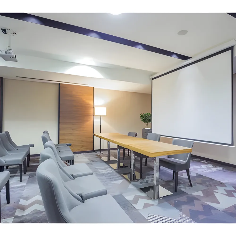 Es perfecto para cine en casa, salas de conferencia, oficinas, aulas, iglesias, universidades y presentaciones empresariales. Su diseño permite instalación tanto en pared como en techo, adaptándose fácilmente a diferentes espacios.