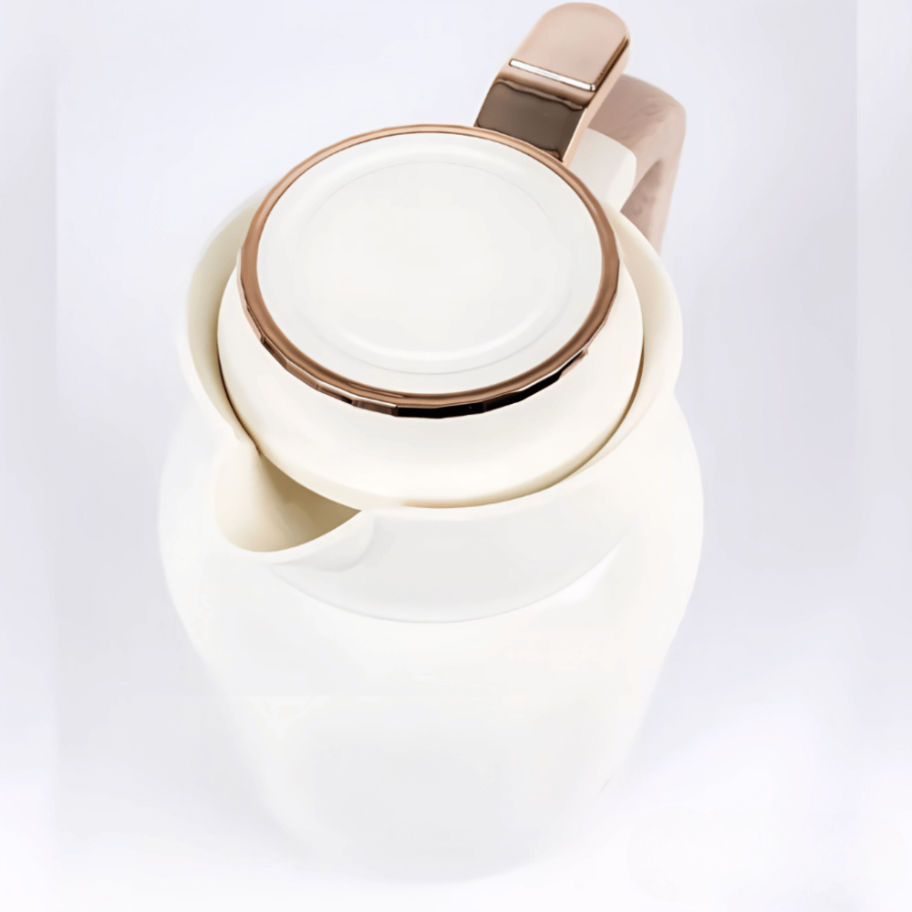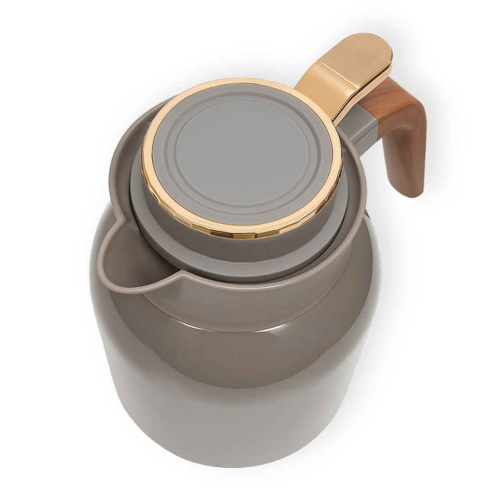 Su diseño ergonómico con mango efecto madera y acabado exterior gris oscuro brillante lo convierte en un complemento sofisticado para tu cocina, oficina o reuniones familiares. Además, su tapa hermética con sistema de vertido preciso evita fugas y mantiene el contenido seguro en todo momento, incluso durante los desplazamientos o en viajes largos.